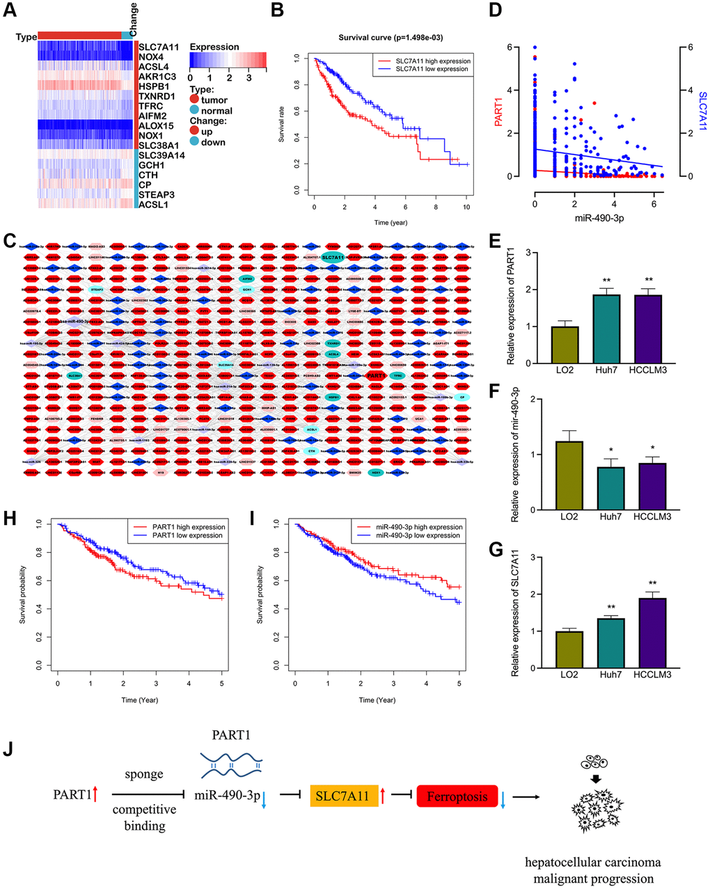 In conclusion, we found that PART1 promoted the malignant progression and alleviated ferroptosis in HCC through the miR-490-3p /SLC7A11 axis. Our findings provide new insights into the mechanism by which PART1 promotes HCC development of HCC and suggest that the PART1/miR-490-3p/SLC7A11 axis is a potential diagnostic biomarker and therapeutic target for HCC, which functions by modulating ferroptosis.