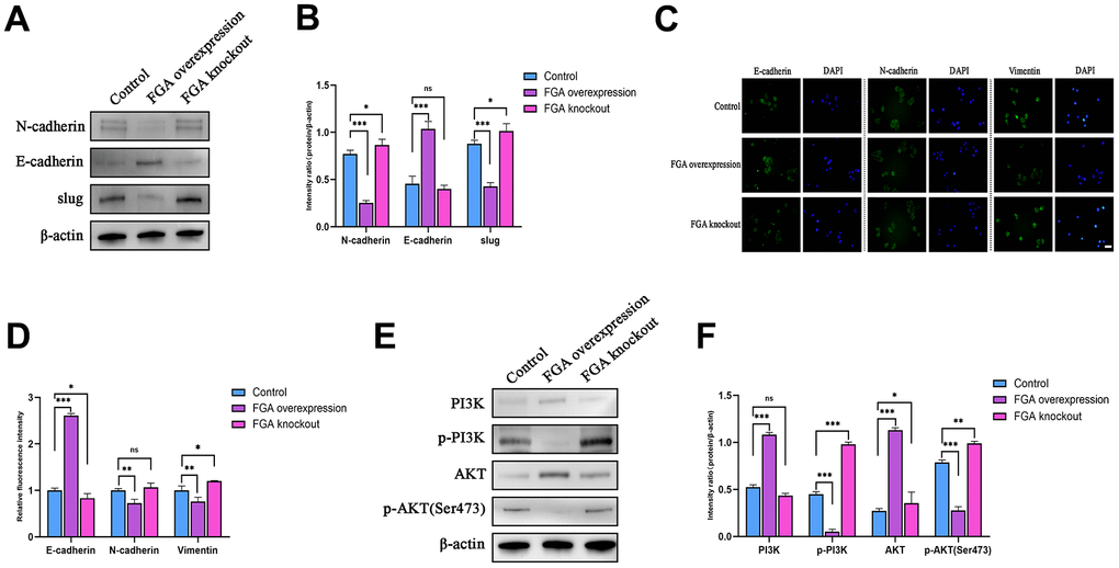 FGA inhibits the epithelial-mesenchymal transition through the PI3K/AKT pathway