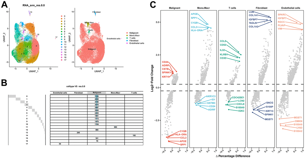 The scRNA-seq data were screened and analyzed using the R package “Seurat” [21]. Firstly, we performed quality control of the scRNA-seq data with the following criteria: 1) exclusion of genes that appeared in fewer than five cells; 2) removal of cells that expressed fewer than 300 genes; 3) elimination of cells with mitochondrial gene expression above 10%; 4) retention of cells with ribosomal genes > 3% and 5) inclusion of cells with hemoglobin genes < 0.1%. We then used the R package “harmony” to reduce batch effects between samples. Subsequently, we normalized the scRNA-seq data using the “ScaleData” and performed principal component analysis (PCA), and the uniform manifold approximation and projection (UMAP) [22] function to reduce the dimensionality. We employed the “FindAllMarkers” function to identify differentially expressed genes in various clusters. Finally, cells were clustered by a resolution of 0.8 and cell annotation was performed by the R package “singleR” [23] combined with manual adjustment.