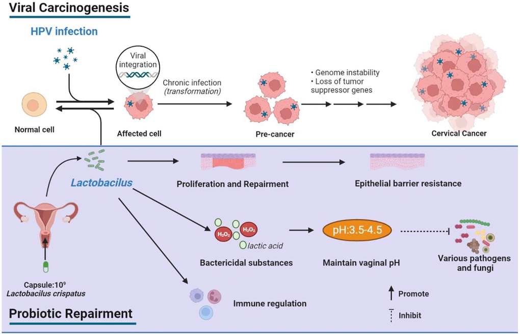 Through high-throughput sequencing analysis, lower levels of Lactobacilli and higher levels of Prevotella and Gardnerella has been found in patients with HR-HPV compared to that of the healthy people. After L. crispatus treatment, the abundance of Lactobacilli increased, while Prevotella and Gardnerella decreased, which tend to be similar to those of the normal healthy population. However, the mechanism by which Prevotella and Gardnerella promotes HR-HPV infection remains unclear.