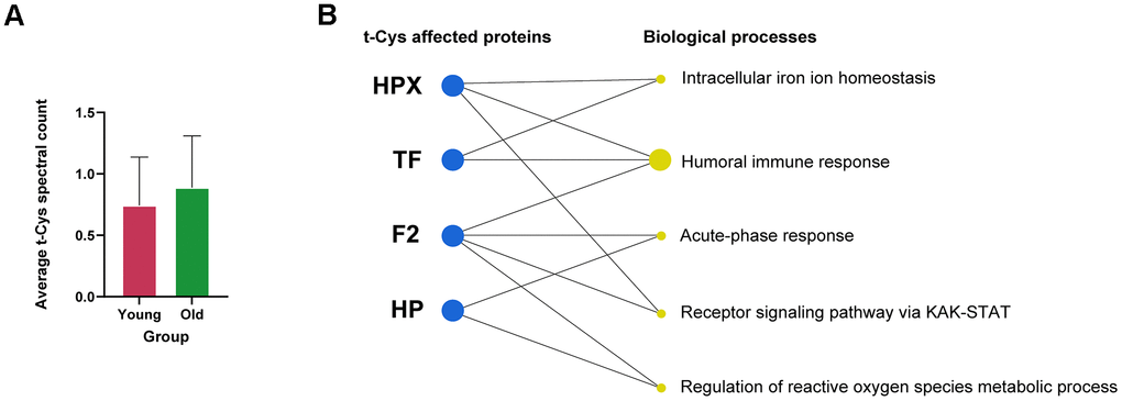 Augmented t-Cys residues in specific circulating proteomes of aging individuals