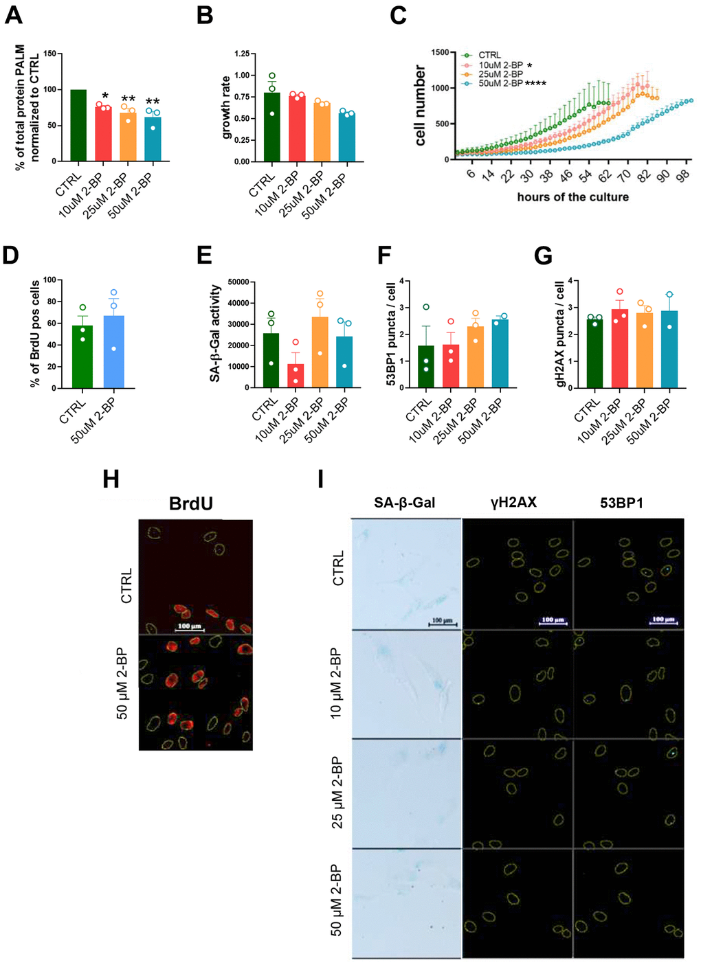 2-BP slows proliferation without inducing markers of senescence