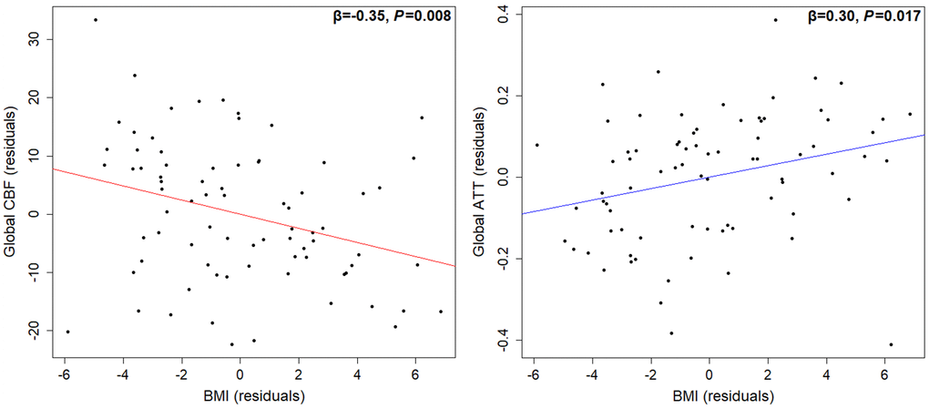 Higher BMI is associated with lower CBF and prolonged ATT in healthy older adults