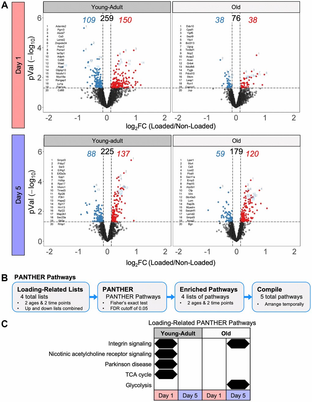 Table 2. Top 10 differentially expressed proteins (loaded vs. non-loaded) in young-adult and old mice following 1 or 5 days of loading, ranked by p-value.