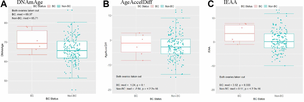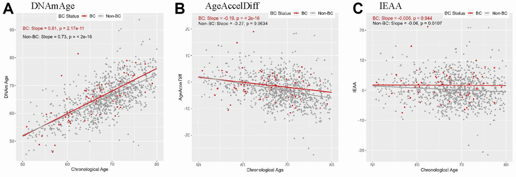 DNAm age and epigenetic age-departure with prospective development of BC