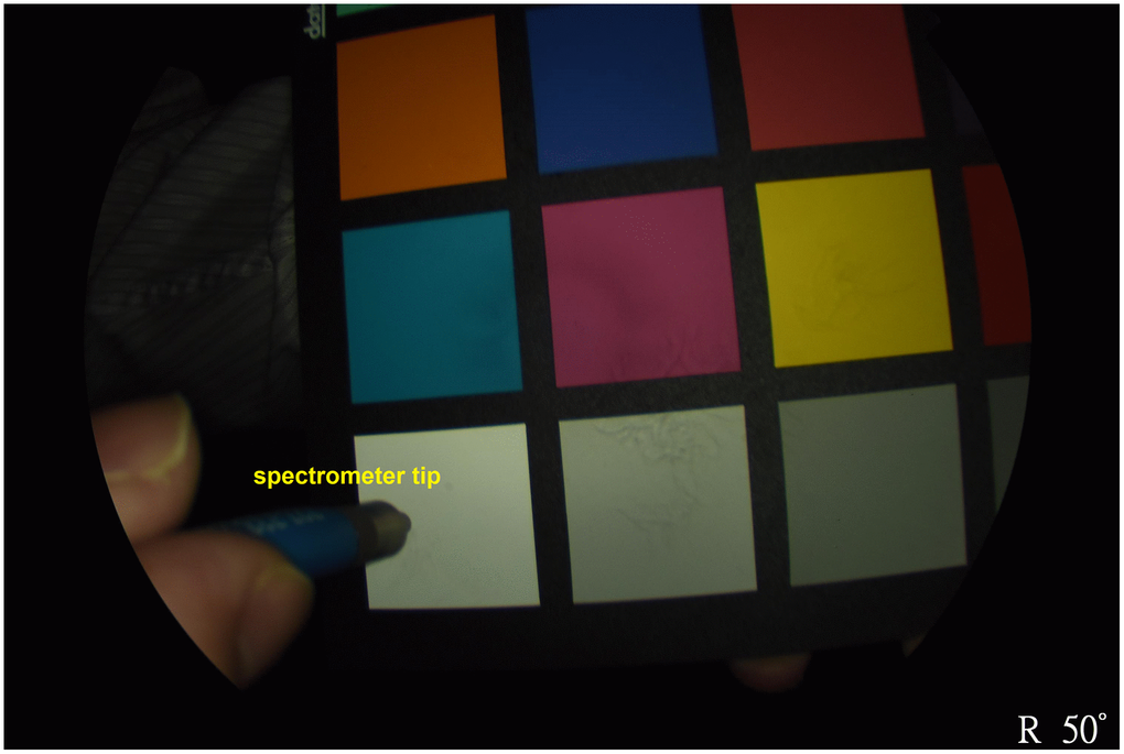 Equation 9 is also employed to extend the (XYZcamera) as the (XYZcamera_extend) resulting in the corrected values between the camera and spectrometer, denoted as XYZcorrection, as delineated in Equation 10: