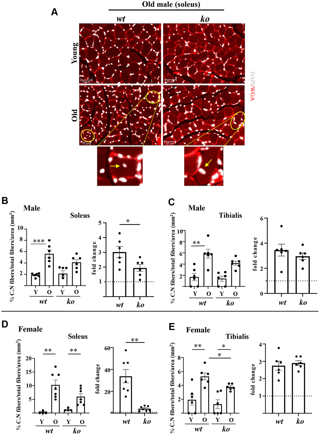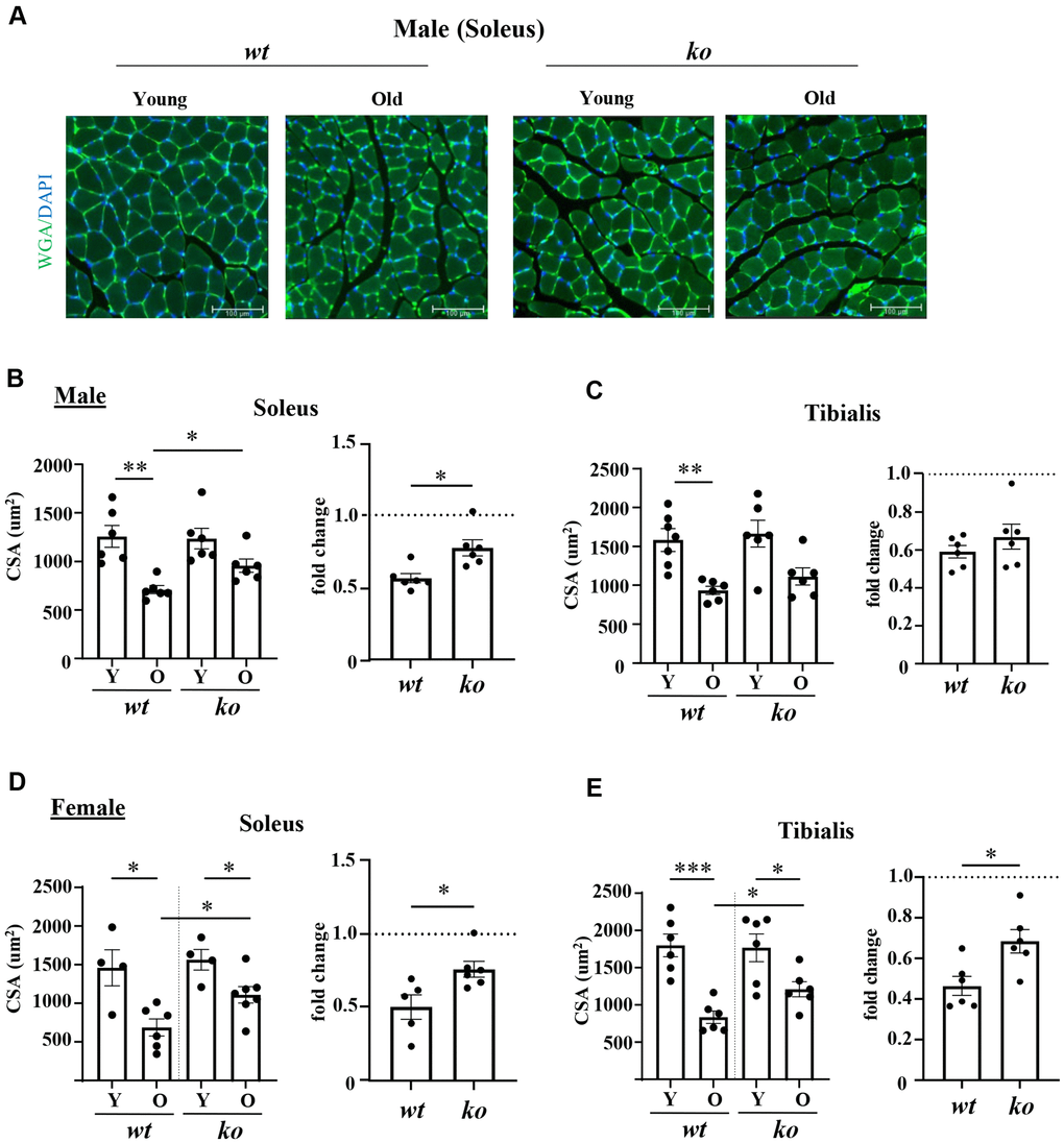 Aging is a multifactorial process characterized by the progressive accumulation of tissue damage and degeneration, leading to the functional decline of organs and eventually death of organisms [1, 2]. Among different organs and tissues, skeletal muscle aging is manifested by muscle fiber atrophy and sarcopenia, contributing to frailty and loss of mobility in the elderly [3]. Potential mechanisms of skeletal muscle weakness include cellular senescence, chronic accumulation of inflammatory cells such as macrophages in skeletal muscle, fibrosis, decrease in vascular density and satellite cells (skeletal muscle stem cells), as well as alterations in muscle fiber types, etc., [4–9]. Despite intensive research, the underlying cellular and molecular mechanisms of skeletal muscle aging remain obscure and not fully understood.