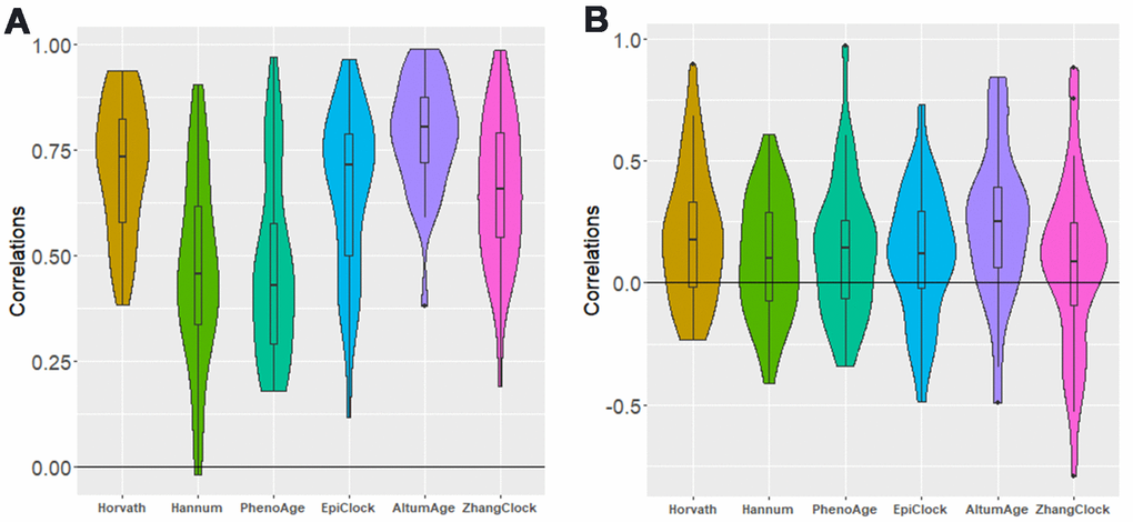 - 35. Hannum G, Guinney J, Zhao L, Zhang L, Hughes G, Sadda S, Klotzle B, Bibikova M, Fan JB, Gao Y, Deconde R, Chen M, Rajapakse I, et al. Genome-wide methylation profiles reveal quantitative views of human aging rates. Mol Cell. 2013; 49:359–67. https://doi.org/10.1016/j.molcel.2012.10.016 [PubMed]