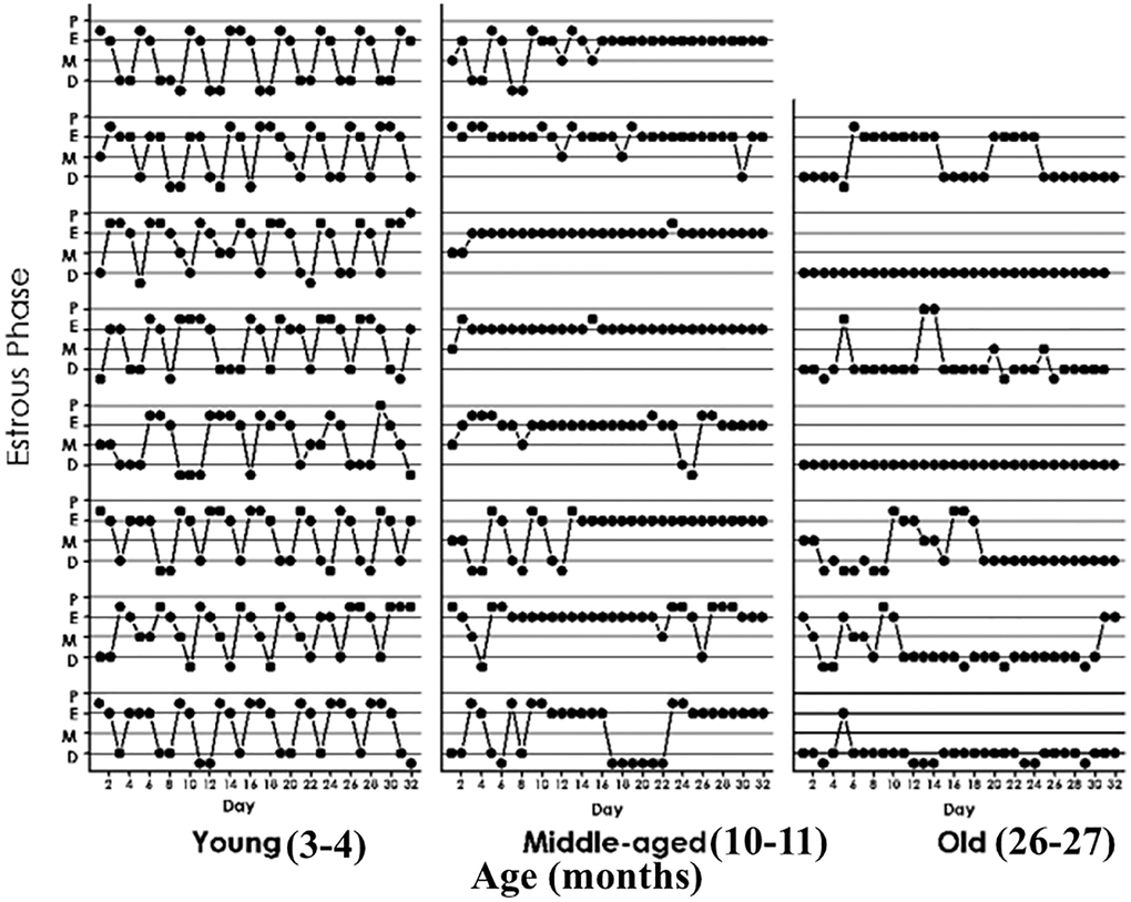 - 21. Lu KH, Hopper BR, Vargo TM, Yen SS. Chronological changes in sex steroid, gonadotropin and prolactin secretions in aging female rats displaying different reproductive states. Biol Reprod. 1979; 21:193–203. https://doi.org/10.1095/biolreprod21.1.193 [PubMed]
