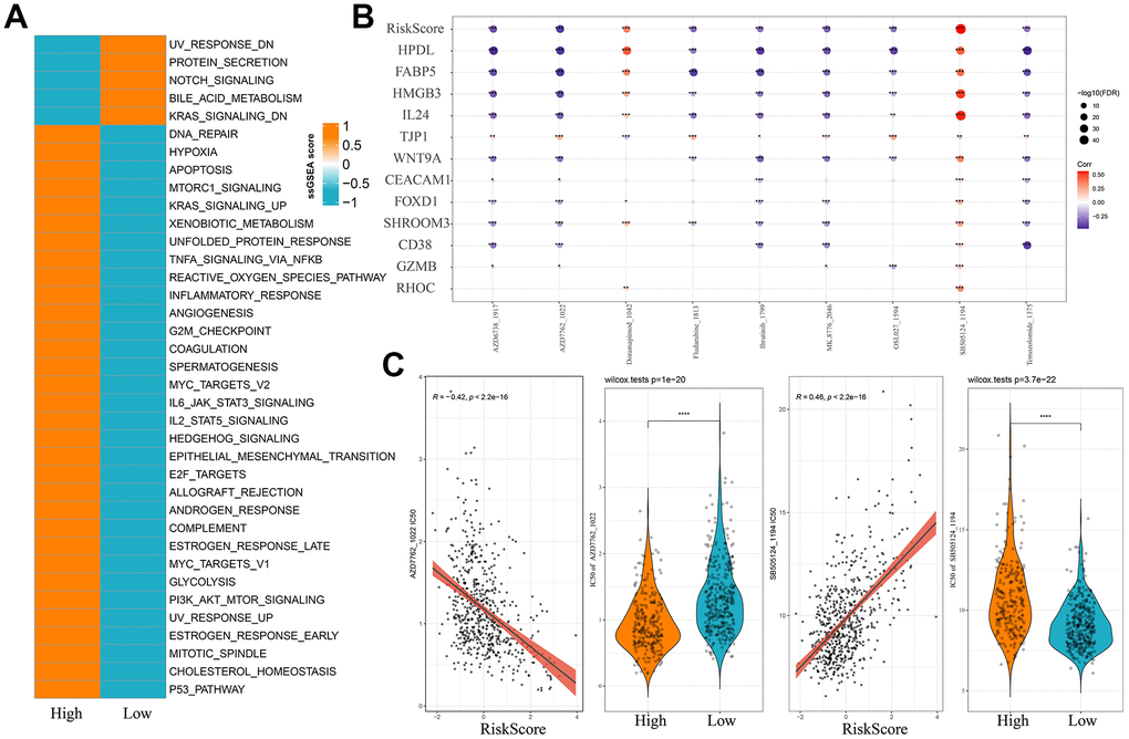 Correlation analysis between risk scores and drug sensitivity