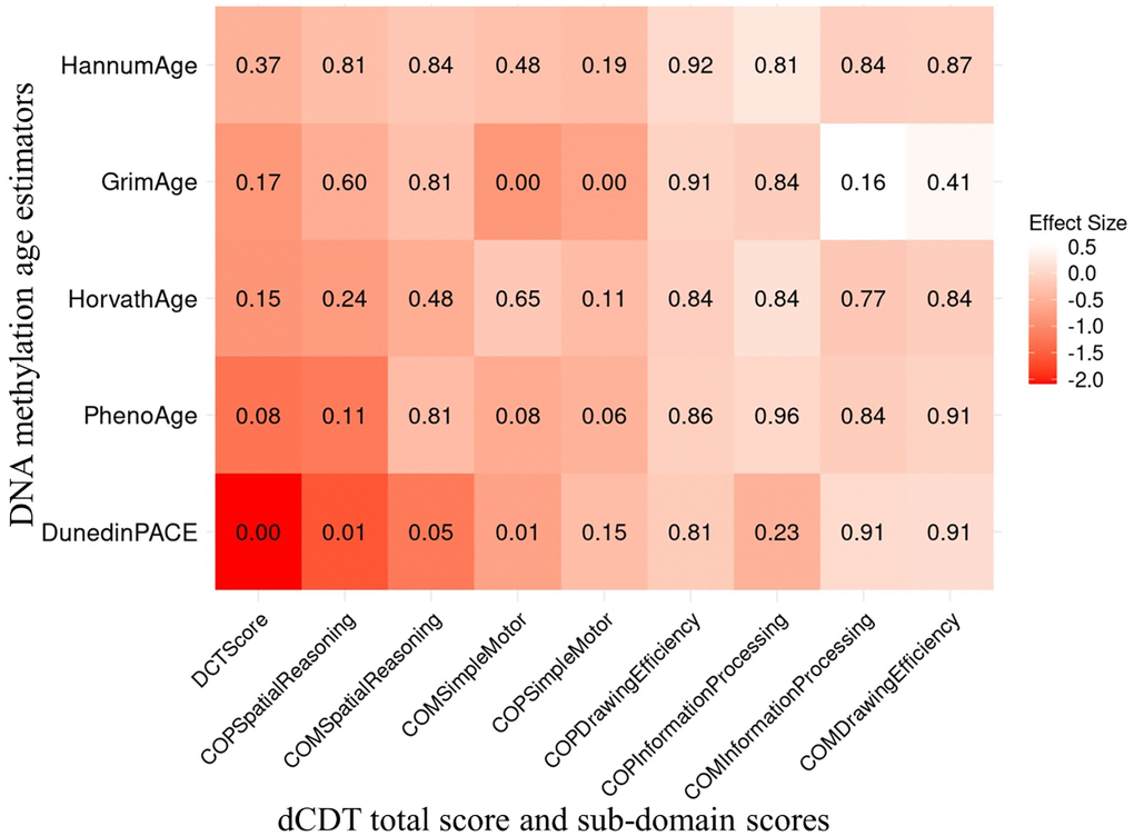 Association between dCDT sub−domain scores and DNA methylation age acceleration