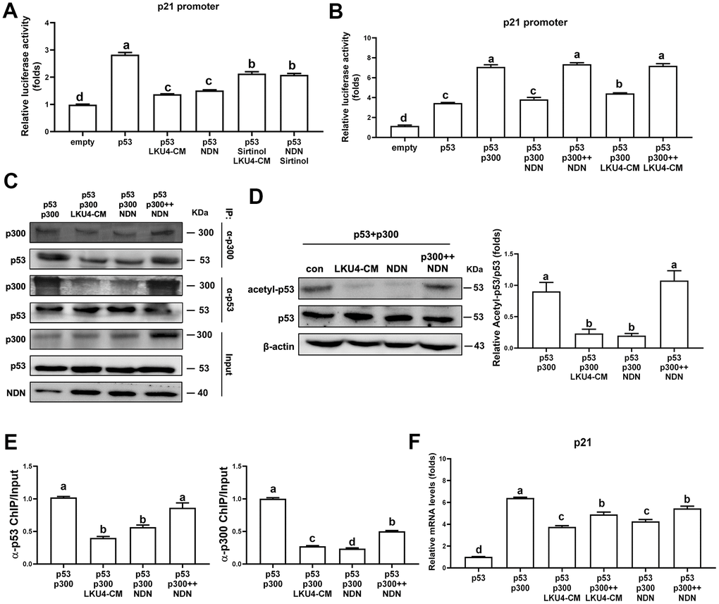 Plasmids, pBluescript II KS (+)–p21 promoter Luc (p21-promoter–Luc), were purchased from Addgene (Watertown, MA, USA). pCDNA3–p53 and pCDNA3–p300 were transfected into HEK293T cells, 3T3-L1 adipocytes or primary adipocytes. pCDNA3–NDN was constructed for a previous study.
