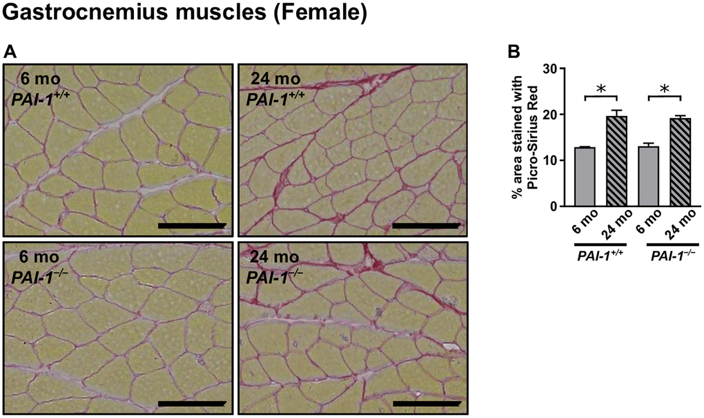 Effects of PAI-1 deficiency on the expression of cellular senescence markers in gastrocnemius muscles of female mice