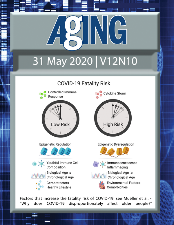 The cover features Figure 2 "Factors that increase the fatality risk of COVID-19“ from Mueller et al.