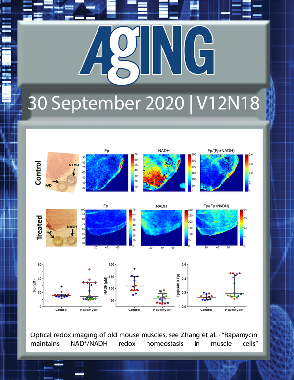 The cover features Figure 6 "Optical redox imaging of old mouse muscles.“ from Zhang et al.