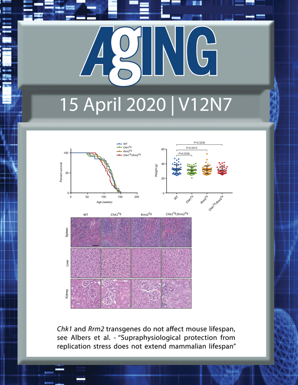 The cover features Figure 2 "Chk1 and Rrm2 transgenes do not affect mouse lifespan“ from Albers et al.