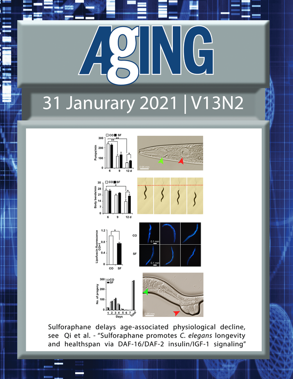 The cover features Figure 3 "Sulforaphane delays age-associated physiological decline“ from Qi et al.