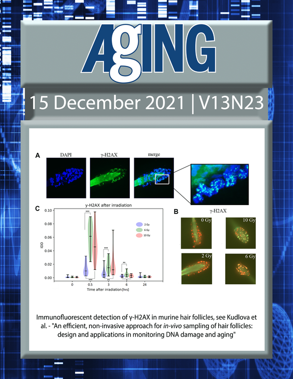The cover features Figure 5 "Immunofluorescent detection of γ-H2AX in murine hair follicles" from Kudlova et al.