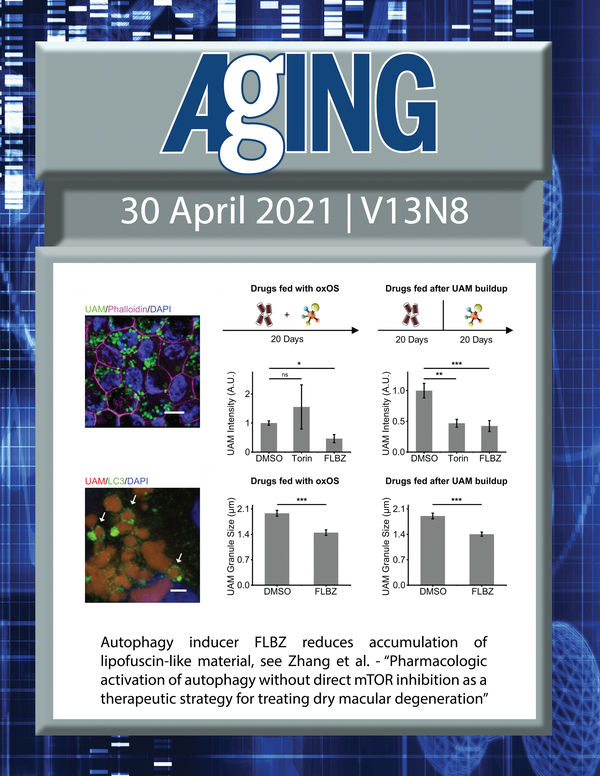 The cover features Figure 4 "Autophagy inducer FLBZ reduces accumulation of lipofuscin-like material“ from Zhang et al.