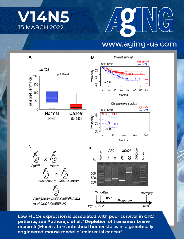 The cover features Figure 1 "Low MUC4 expression is associated with poor survival in CRC patients" from Pothuraju et al.