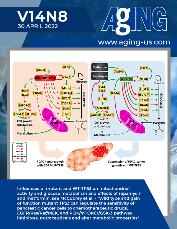 The cover features Figure 16 "Influences of mutant and WT-TP53 on mitochondrial activity and glucose metabolism and effects of rapamycin and metformin" from McCubrey et al.