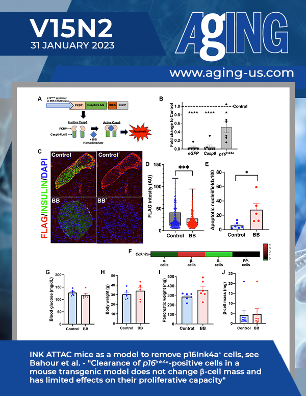 The cover features Figure 1 "INK ATTAC mice as a model to remove p16Ink4a+ cells" from Bahour et al.