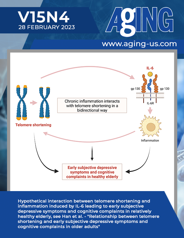 The cover features Figure 4 "Hypothetical interaction between telomere shortening and inflammation induced by IL-6 leading to early subjective depressive symptoms and cognitive complaints in relatively healthy elderly" from Han et al.