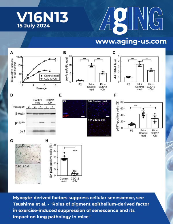 The cover features Figure 1 " Myocyte-derived factors suppress cellular senescence" from Tsushima et al.