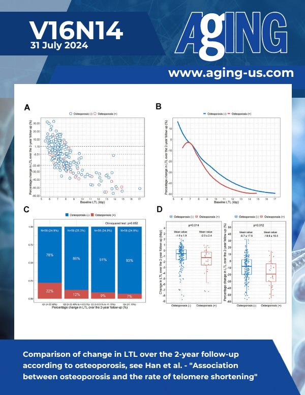 The cover features Figure 3 "Comparison of change in LTL over the 2-year follow-up according to osteoporosis" from Han et al.