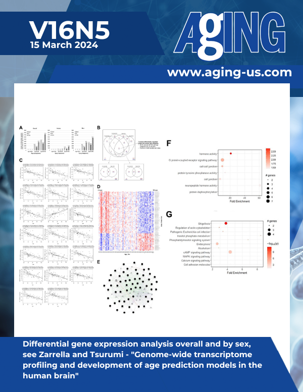 The cover features Figure 1 "Differential gene expression analysis overall and by sex" from Zarrella and Tsurumi