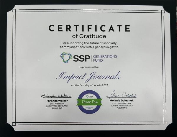 Impact Journals was a supporter and exhibitor of the SSP 44th Annual meeting, "Building a More Connected Scholarly Community," in Chicago, IL, USA.