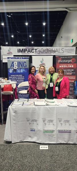 Impact Journals (Aging's publisher) was an exhibitor at the AACR Annual Meeting 2023 in Orlando, FL, USA.