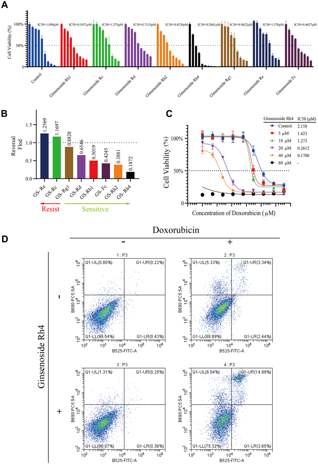 Ginsenoside Rh4 enhances doxorubicin-induced cell apoptosis in vitro