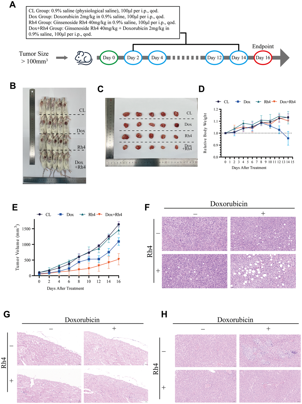 Ginsenoside Rh4 enhances the efficacy of doxorubicin in inhibiting tumor growth in vivo
